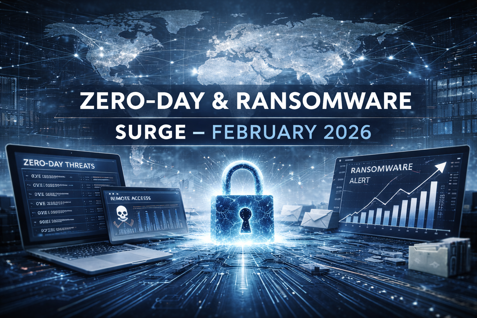 The February threat environment reflects compressed exploitation timelines, rapid ransomware automation, and sustained abuse of remote access platforms.